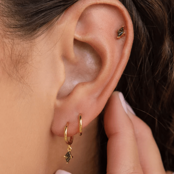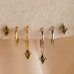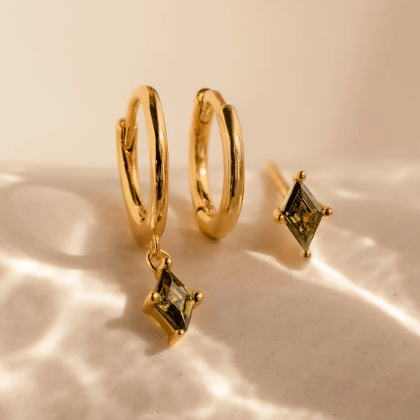 Peridot Earring Set featuring Dangling, Hoop, and Stud Earrings. Elegant Green Birthstone Jewelry.